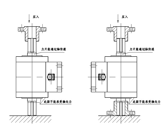 2、量程大于等于10Nm的傳感器安裝聯(lián)軸器法蘭時,應將傳感器軸垂直放置,將上端法蘭垂直壓入。如現(xiàn)場無壓力機可用銅棒將法蘭均勻輕輕打入,然后依比安裝另一端法蘭。